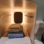 Yatak odaları, kitap okuma lambaları, başucu okuma lambaları ile yataklara sahiptir. Müşterek banyolarda duş kabini, ayrı tuvalet bulunur.